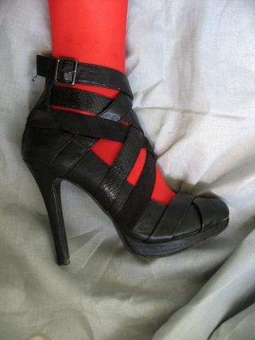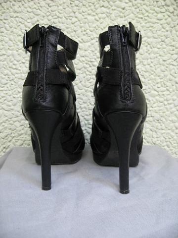 Juodi aukštakulniai bateliai, su įvairiomis detalėmis: sagtimis, dirželiais. Buvo dėvėti vieną kartą per išleistuves. Kulno aukščiausia vieta 12,6cm, platformos aukštis 1,8cm. Dydis:40