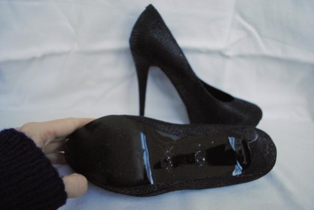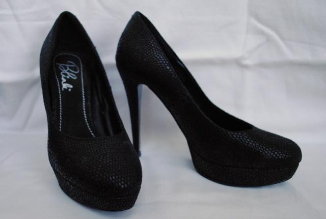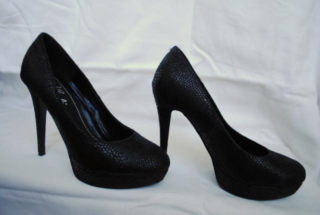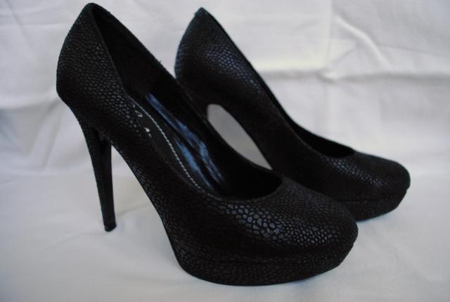 Puikios kokybės (pirkti prieš porą metų, tačiau avėti tik vieną kartą per brolio vestuves) juodi, gyvatės odos imitacijos aukštakulniai. Vis dar turiu ir originalią dėžę. Platforma nuo 1,5 cm iki 2,5 cm, kulniukas 10 cm.