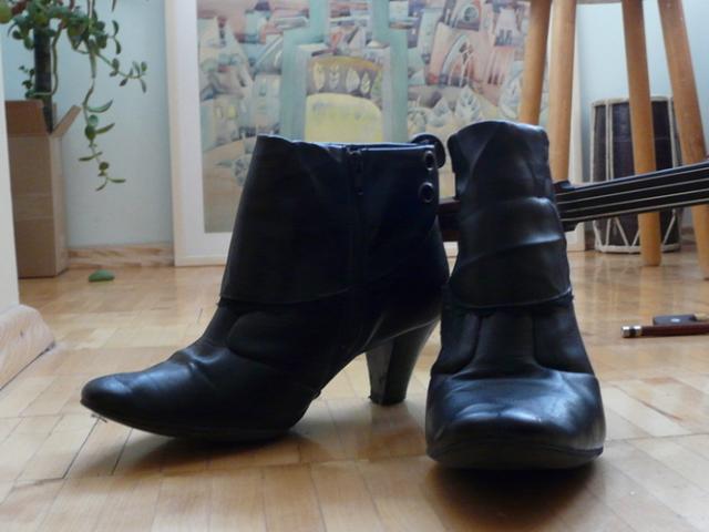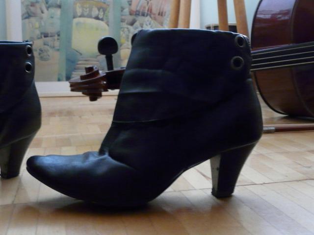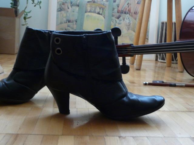Odiniai, truputį nėšioti, bet nenunešioti. Tikrai geros būklės. Abu turi po 4 kilpeles gale, į kurias galima įverti kaspiną ir taip pagyvinti jų juodą spalvą :} dydis yra 39