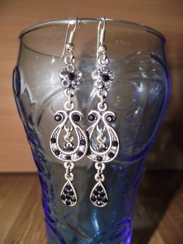 juodi kabantys auskarai su blizganciom akutem