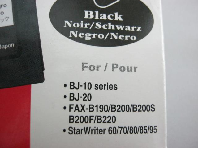 Juodi dažai CANON spausdintuvui. Tinkami modeliai: BJ-10 series BJ-20 FAX-B190/B200?B200S/B200F/B220 StarWriter 60/70/80/85/95