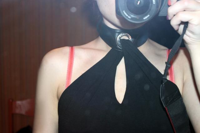 Be rankovių, kaklas odinis, gale susiriša odiniu raišteliu, tinka bet kokio pločio kaklui. Žiauriai faina, bet dabar prie mano stiliaus nebetinka. Tiks xs/s/m dydžiams. Nelabai sekės galą nufotkint, bet šiek tiek matos