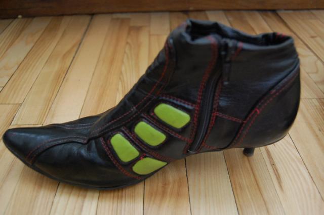 Šie bateliai buvo auliniai, bet as juos nukirpau ir pasidariau trumpus aulinukus. Labai patogūs ant nedidelio kulniuko batukai su įdomiomid žaliomis detalėmis ant šonų, kaip matote nuotraukoje. Yra pabraižymų, bet jų nesimato.