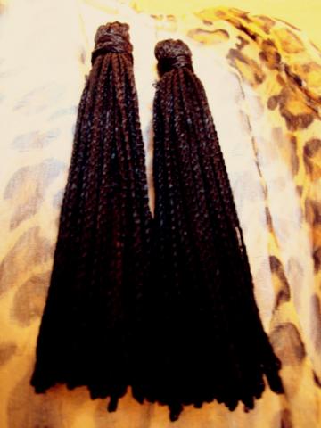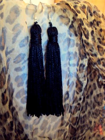 Silko virveliu juodi auskarai gana stori ir ilgi,iki peciu...Ilgi galite pasirinkti