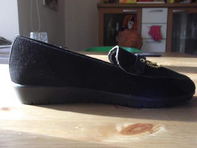 juodi zomšiniai batukai su auksinėmis grandinėlėmis, 4 (37) dydis. už papildomą mokestį siunčiu į kitus miestus.