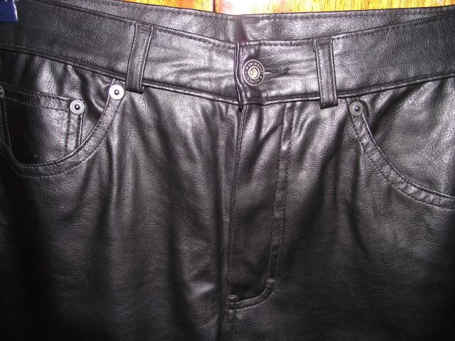 Dirbtinės odos, labai gražiai priglunda prie kūno. Dėvėtos gal vieną kartą, dydis L.