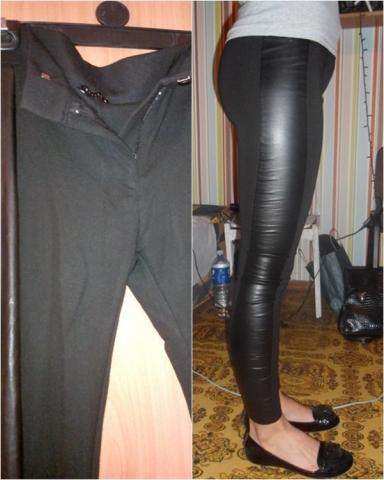 Dėvėtos vos keletą kartų kelnės su odos imitacija šonuose.