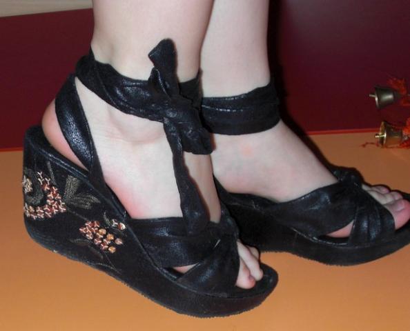 labai dailios,ant platformutes, platforma dailinta blizgiu dekoru ir rastais :) Odos imitacija ar kas ten nzn :) labai lengvutes apsirisa aplink kojyte ir nekiek nespaudzia ar pan ;) bukle puiki