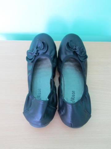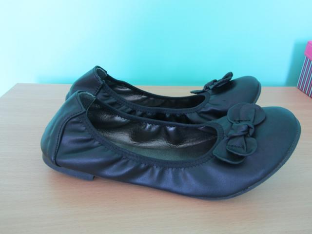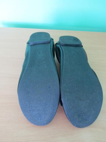 Juodos "balerinkės" kietu padu su bantuku. Minkštos dirbtinos odos. Nors dydis parašytas 38, tačiau mano kojai spaudžia, tad sakyčiau 37 tinkamesnės.
