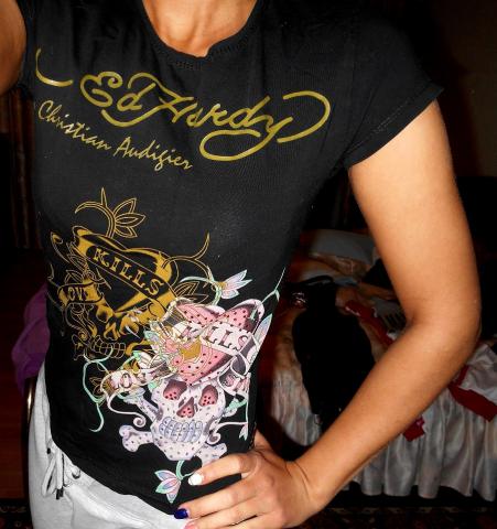 Juodos spalvos , trumpomis rankovėmis bliuskutė, raso dydi L, bet ji mazesne Ismatvimai: ilgis nuo peciu 54 cm nuo pazastu ilgis : 35 cm per krutine : 39 cm