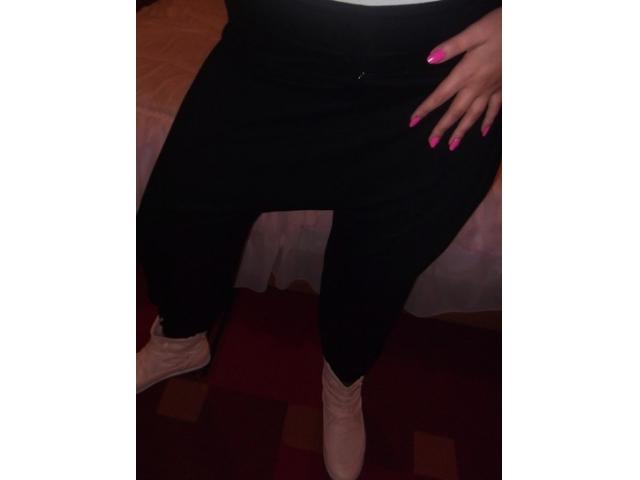 Juodos spalvos medvilinės kelnės su nusmukusiu klynu. Stiliaus dalis :) Žiauriai patogios, gaila man trumpos,todėl tenka parduoti. Ūgiui iki 172,tada būtų iki kauliukų. Apačiose įdėtos gumos,kurios pasitempia. Defektų neturi. Dydžiams nuo 36S iki xxl46 ;) +siuntimas 5LT