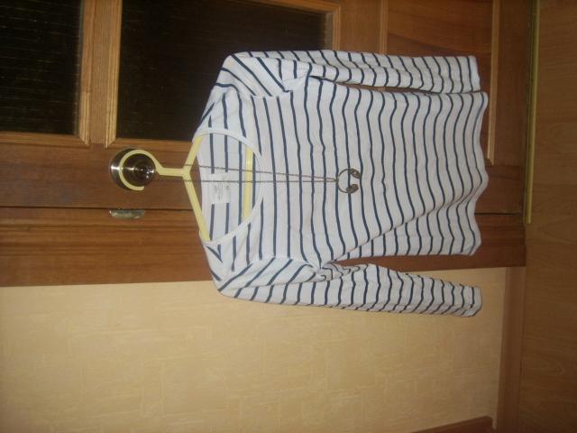 Tampri balta-mėlyna dryžuota palaidinė,gražiai apsitempia,defektų neturi :) Jei kas domina, klauskit. Dydis S,S/M