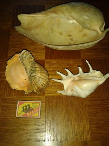 Parduodu jūrines kriaukles - pati didžiausia apie 22 cm ilgio, kaina 20 EUR, kitos 2 mažesnes po 10 cm ilgio po 10 EUR už vnt. Jei pirksite visas kartu - parduosiu už 35 EUR. Skambinti 860153737