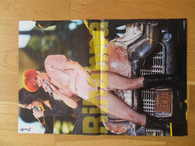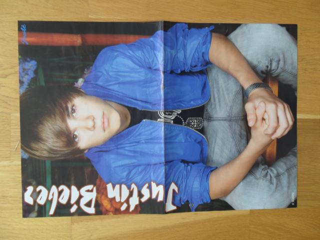 Abipusis plakatas. Is vienos puses Justin Bieber, is kitos puses Rihanna.
