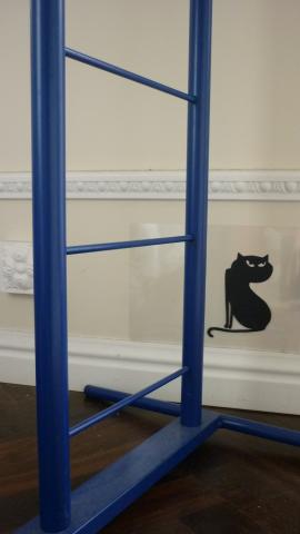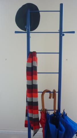 Metalinė, melyna, primena kopėčias, todėl patogi ir viršutiniams drabužiams bei aksesuarams. Perkančiam padovanosiu sienos lipduką su katinu:)