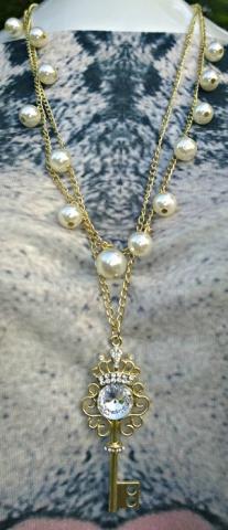 ♥Labai gražus kaklo papuošalas su perlais ir raktu. ♥Ilgis: 70 cm