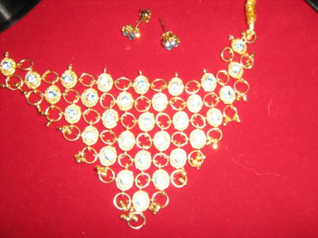 Indiškas kaklo papuošalas, prie jo auskariukai...