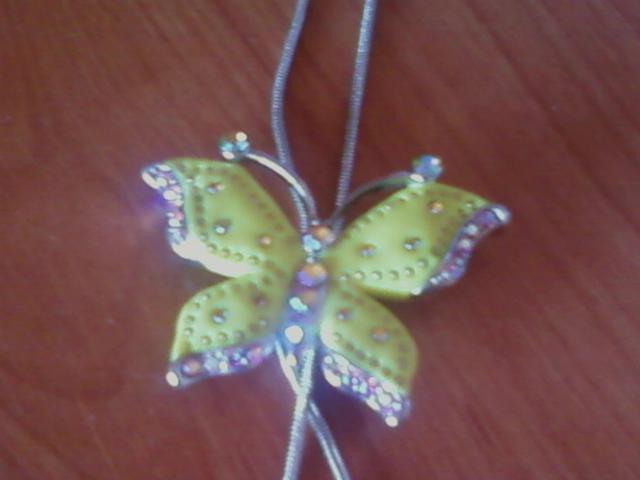 Kaklo papuošalas, drugelis ant sidabro spalvos grandinėlės, iš kokybiško metalo kuris nesitrina ir neblunka.