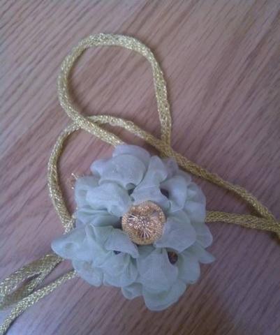 Kaklo papuošalas/sagė 6cm x 6cm dydžio. Galima nešioti kaip kaklo pakabutį arba įsisegti kaip sagę.