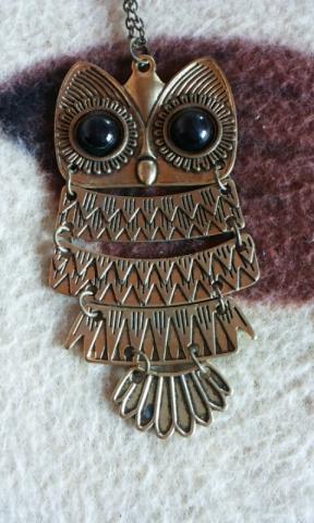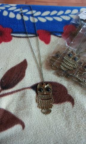 kaklo papuošalas pelėda,auksinės spalvos. kaina su siuntimu.