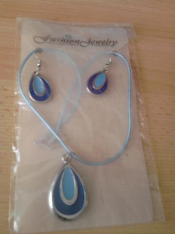 Mėlynas pakabukas ir auskarai. Visiškai naujas,net neišpakuotas.