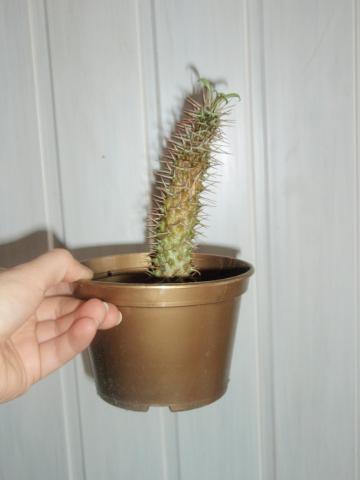 Jaunas kaktusiukas, "Hipis" :)- as taip ji vadinu :), nes auga i virsu ir zydi bei lapelius leidzia virsuneleje, labai smagus ir fainas augaliukas