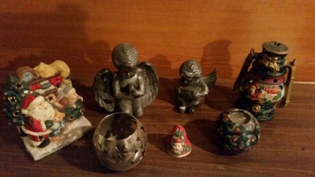 kaledines sventines dekoracijos angelai senis saltis zvakides zvakes varpeliai namukai