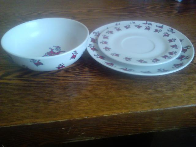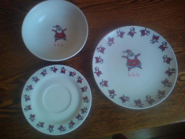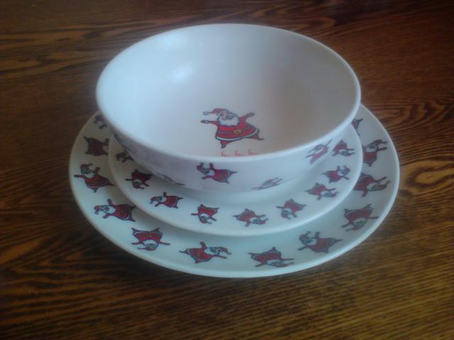 Dubenėlis, maža lėkštutė bei didesnė lėkštė su Kalėdų Seneliu.