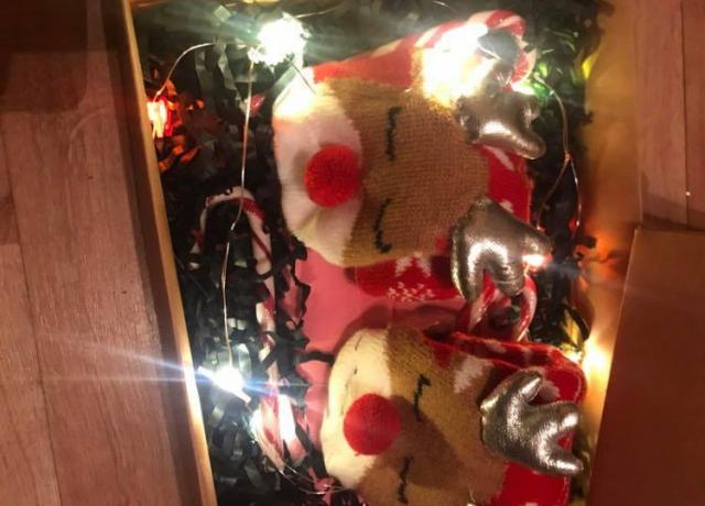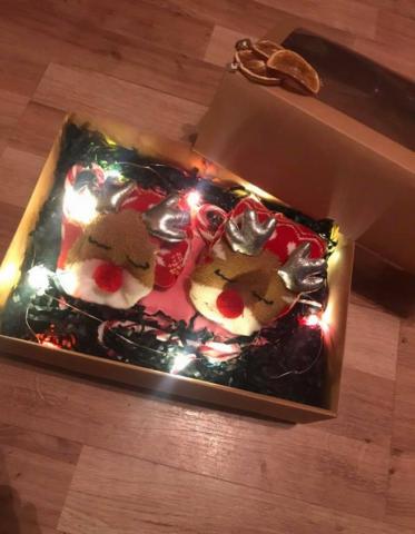 --Kalėdinis rinkinys-- Tinka tiek vaikinui ar merginai Rinkinį sudaro: *Marškinėliai su užrašu (pasirinktinai) *Linksmos kojinytės *Saldainiai *Dekoracijos Siunčiu ominva paštomatu.
