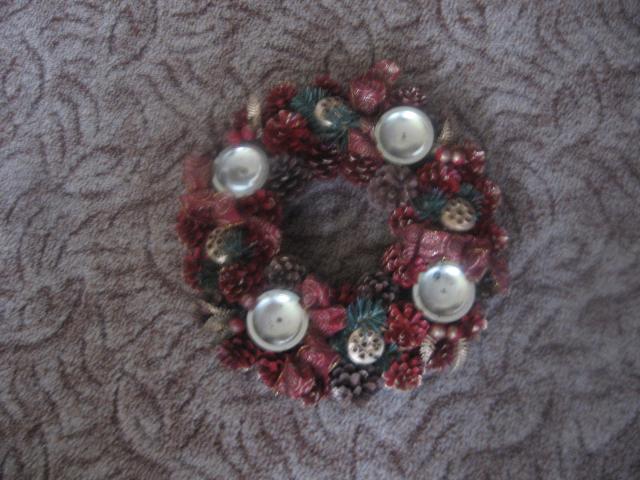 Puikus ir grazus vainikas kaledoms.dedasi 4 zvakutes ir i viduri viena didele.