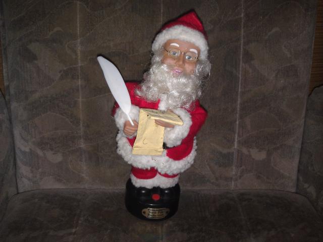 Kaledu senelis rasantis sarasa, kai paspaudi raudona mygtuka judina ranka su plunksna ir galva i sonus. Dydis kai A4 lapo