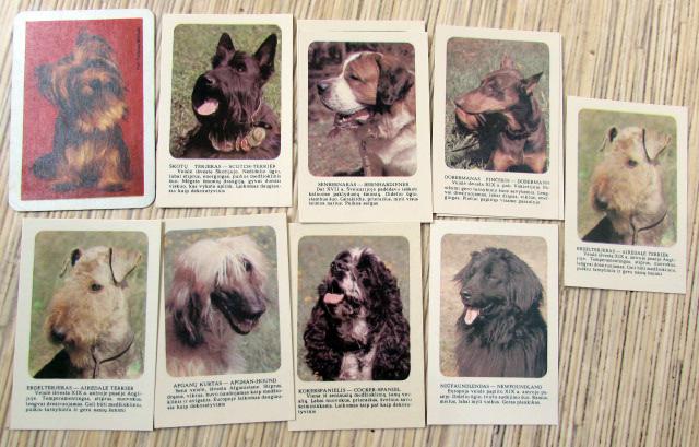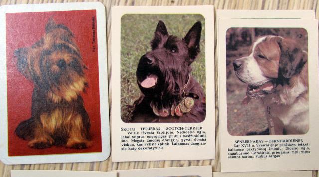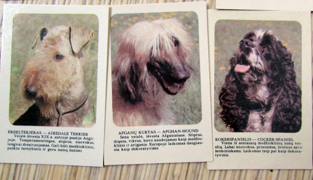 8 lietuviški kalendoriukai su šunimis - 1988 metų. Vienas lenkiškas, su terjeru - 1983 m. Vieno kalendoriuko kaina - 0,70 euro.