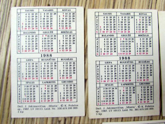 Kalendoriukai su šunimis - 1988 m. ir vienas - 1983 m.