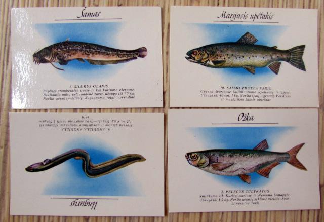 4 kalendoriukai su žuvimis. Ungurys, ožka, margasis upėtakis ir šamas. Vieneto kaina - 0,50 euro.