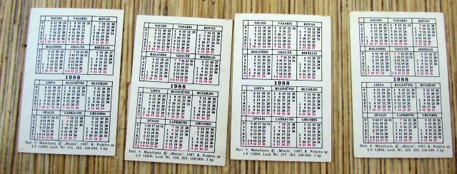 Kalendoriukai su žuvimis, 1988 m. lietuviški