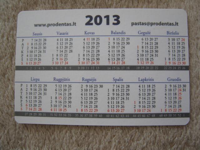 kalendoriukas 2013m, kolekcionuojantiems kredetinės kortelės dydžio ir formato