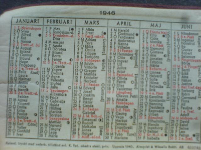 kalendoriukas-knygutė -1946m. (švedija) -1