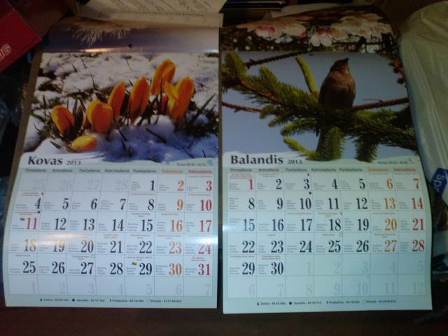 kalendorius " metu laikai - 2013 " 2 vnt