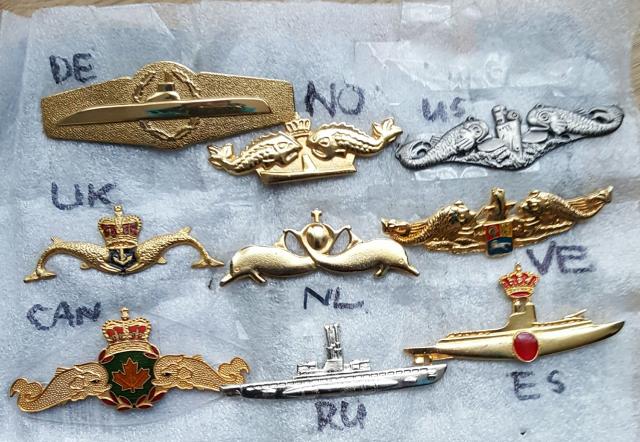Povandenininku zenklai: Vokietija, Norvegija, JAV, Jungtine Karalyste, Olandija, Venesuela, Kanada, Rosija, Ispanija. Kaina uz visus. Eina visi kartu. Siunciu nemokamai.