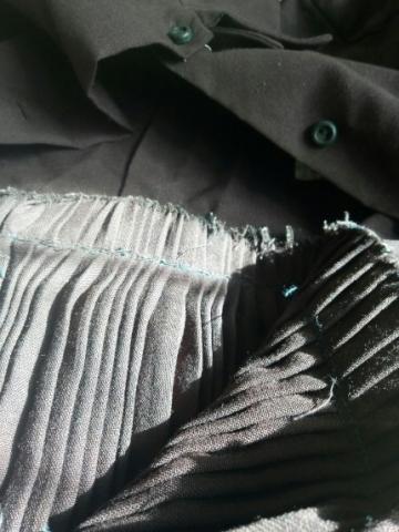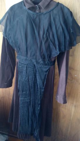 Nenauja, maxi ilgio 1986-1987 m. Tinka teminiam vakarėliui. Prijuostės jau nėra. pečių pl.rankovių 36, rankovės ilgis 62, alkūnė pratrinta. Ilgis iki liemens 44 cm.plise ilgis 66 cm +įleista 5 cm. Liemuo 41 cm.(apie, nes pridėta ta plise daris"išaugimui". Yra audinio pažeidimų. Ties krūtine sulenkus 48 cm.