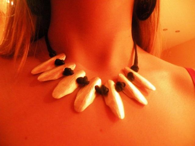 Labai puosnus, su metalinemis plostelemis. Ilgis reguliuojasi grandinele nugaroje