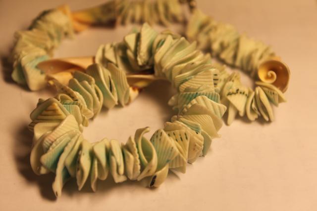Nerealūs karoliai iš natūralių kriauklių, vežti iš parodos. Labai tvirti, ilgis pats tas, o ir originalūs labai! Švelniai žydros spalvos