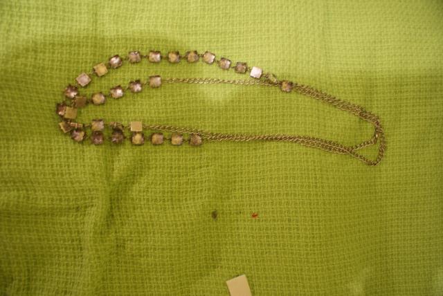 Nauji karoliai gan gruboki ir didoki iš parduotuvės Stradivarius iš metaliniu keturkampių deimatukų (netikrų) jie gan didoki, tai ir patys karoliai gan masyvus, bet i klubą ar kitur gražu.