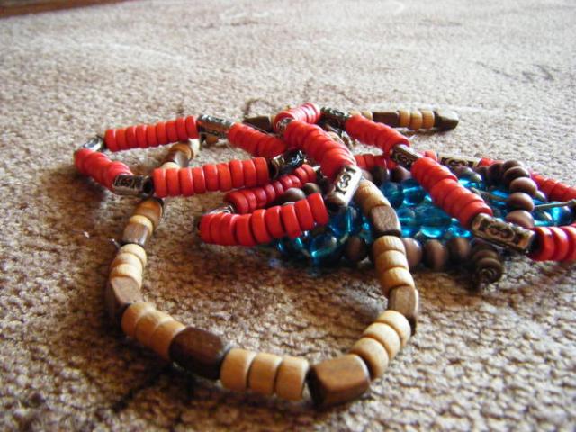 Įvairūs mediniai ar kitokie karoliai, vėriniai, apyrankės.Galima išardyti.Galiu pridėti biserio, ar kitokių karoliukų.