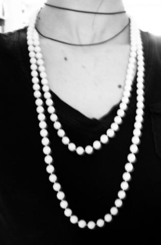 Tokių pačių tik juodų arba atseit iš perlų. Būtinai ilgų, kad kelis kartus apsivyniotų.