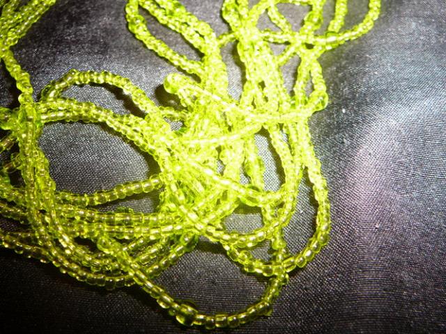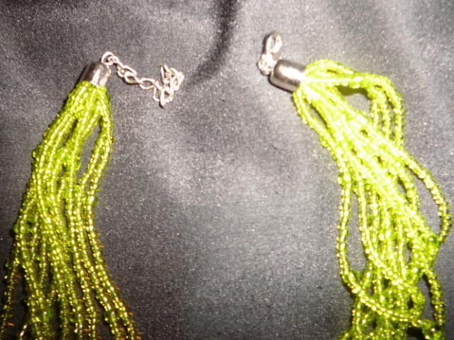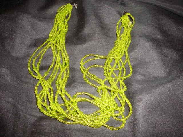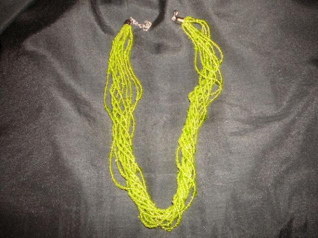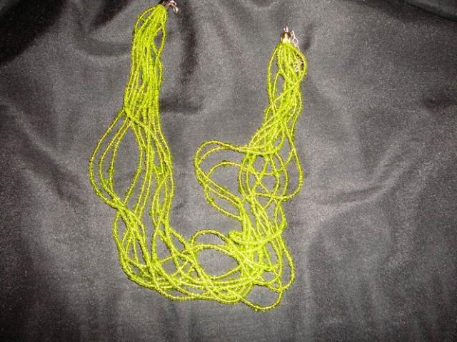linksmi zalios spalvos karoliai..suplyhso. dabar liko tik karoliukai!