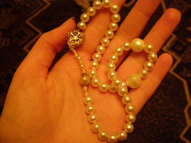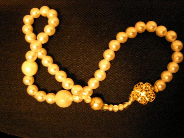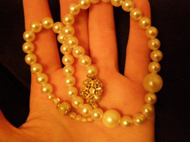 tai karoliuku verinus,kuri yra lyg ir apyranke,na ant plono rieso 2 kartus apsivynioja.susisega su graziu,auksines spalvos uzsegimu