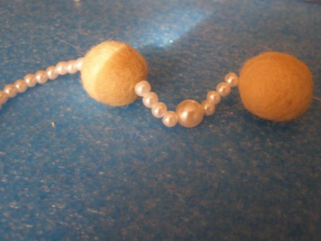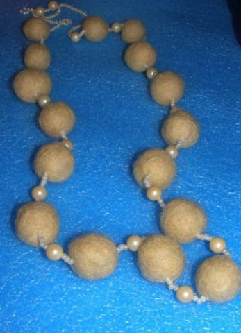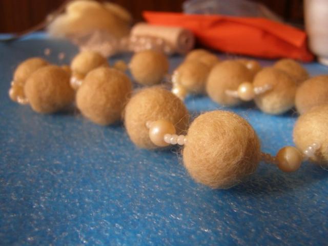 Rankų darbo, kūno spalvos karoliai iš veltinio