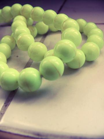 Karoliukai tamposi ant gumytės, tad greit nesutruks. Labai gera beveik nauja būklė nebuvo nei sutrukę nei suplyšę. Užsidėta keletą kartų.Karoliai neliigi ir nepasiilgina. Jie yra gražūs bei madingi visais metų laikais. cc;
