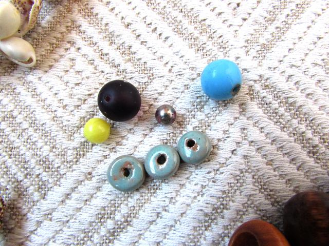 Karoliukai - mediniai, kriauklelės ir kt.